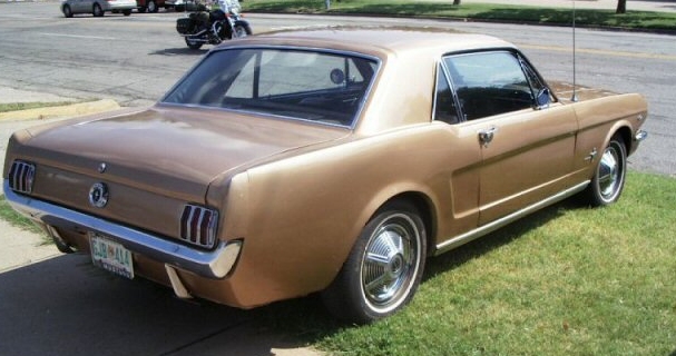 Ah, and mere hours after my birth, I was led home held in the arms of my mother, and got my first ride in a Mustang. In that day and age, nobody had the forethought to develop a child seat yet, so I got to sit shotgun in her arms and experience the Mustang experience. Part genetics, part my first visual recollections of the real outside world, the love had been born. She was called bronze but seemed closer to Gold, though not Lime Gold......yet. |